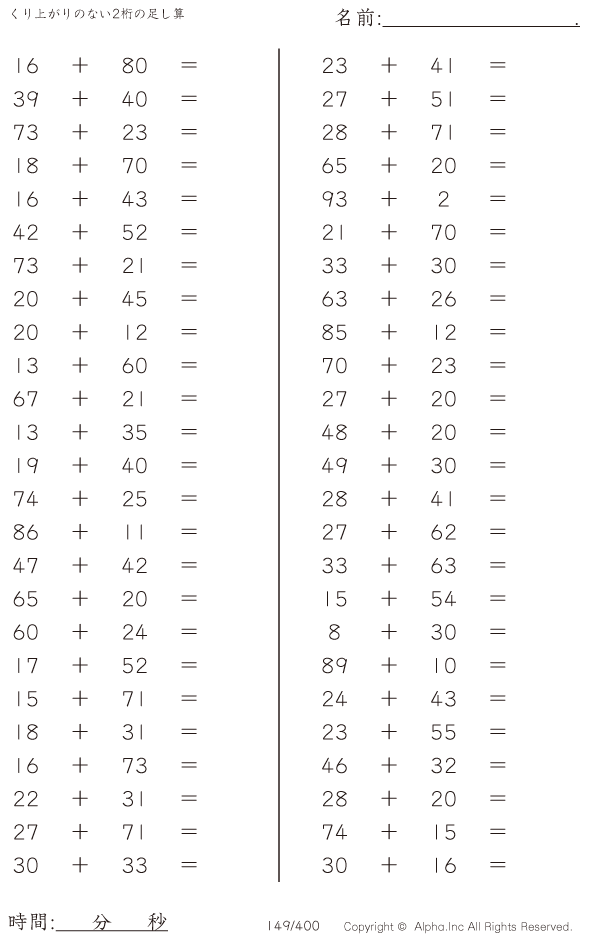 くり上がりのない2桁の足し算 [問題]149/400