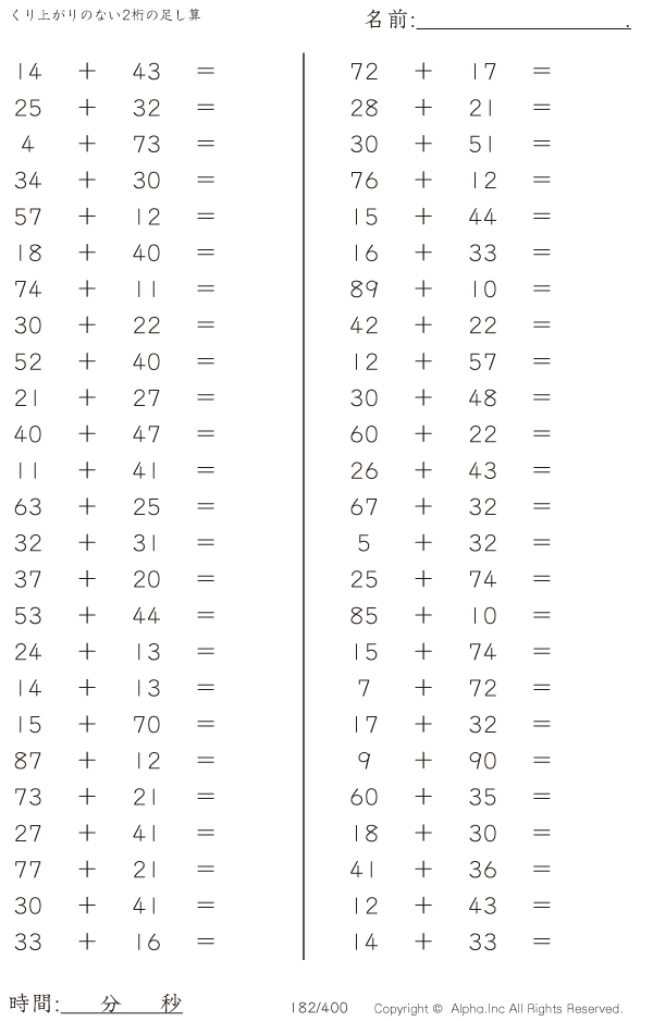 くり上がりのない2桁の足し算 [問題]182/400