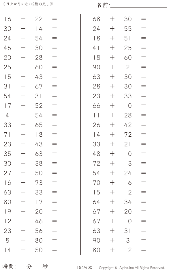 くり上がりのない2桁の足し算 [問題]184/400