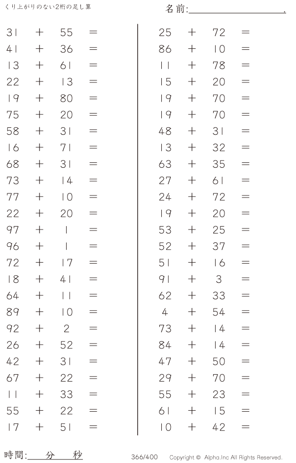 くり上がりのない2桁の足し算 [問題]366/400