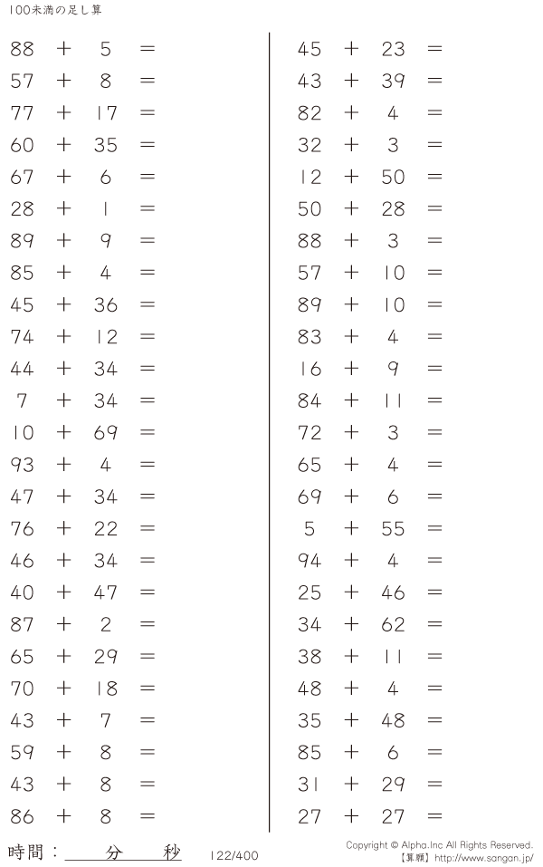 100未満の足し算 [問題]122/400