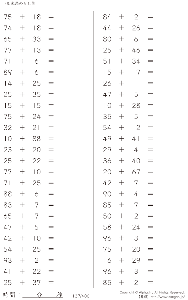 100未満の足し算 [問題]137/400