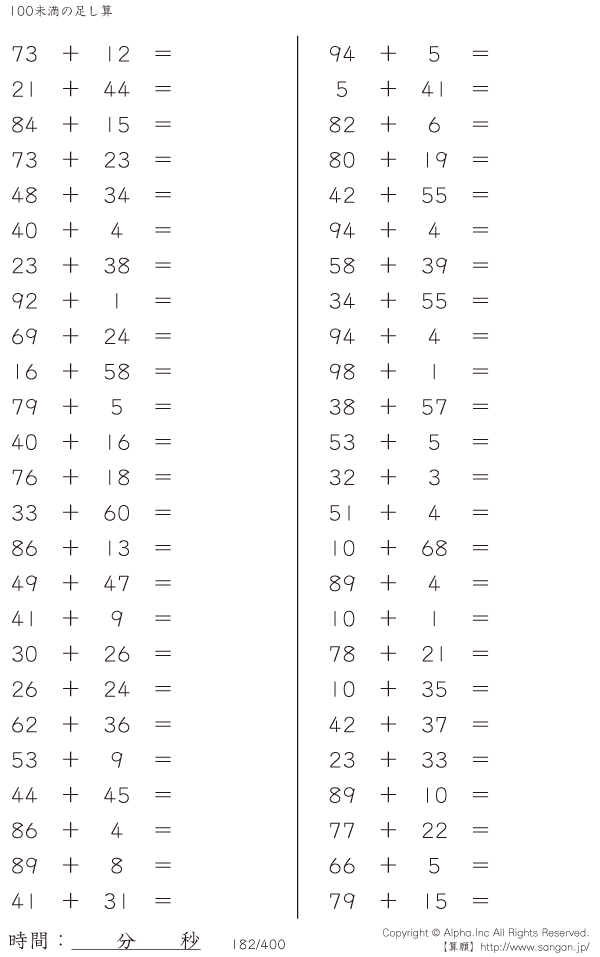 100未満の足し算 [問題]182/400