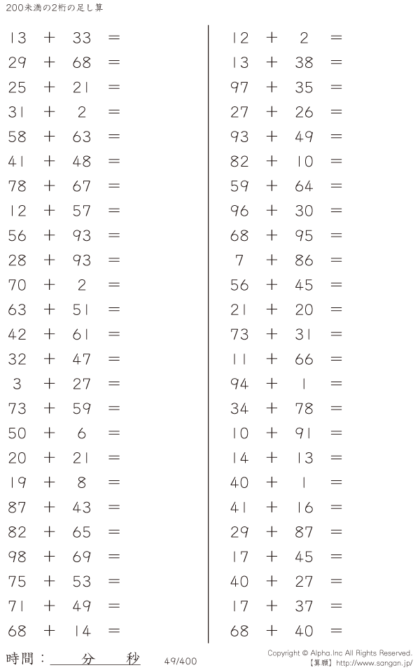 200未満の2桁の足し算 [問題]049/400