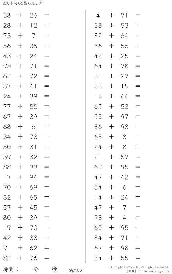 200未満の2桁の足し算 [問題]169/400