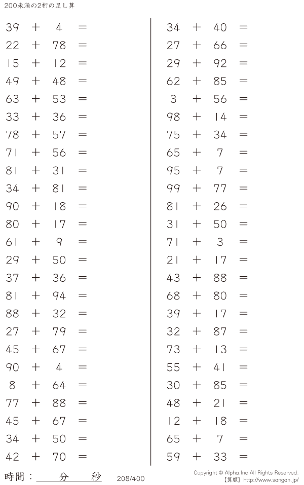 200未満の2桁の足し算 [問題]208/400