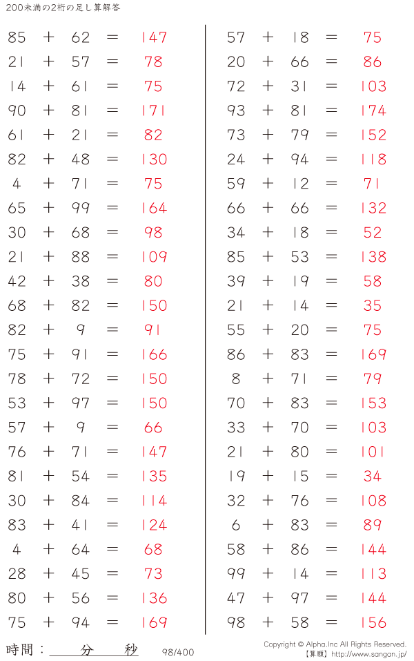 200未満の2桁の足し算 [解答]098/400
