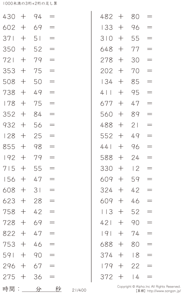 1000未満の3桁+2桁の足し算 [問題]021/400