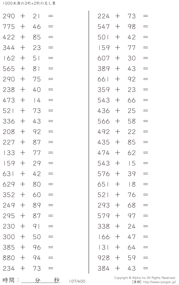 1000未満の3桁+2桁の足し算 [問題]107/400