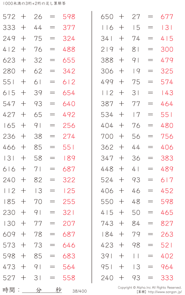 1000未満の3桁+2桁の足し算 [解答]038/400