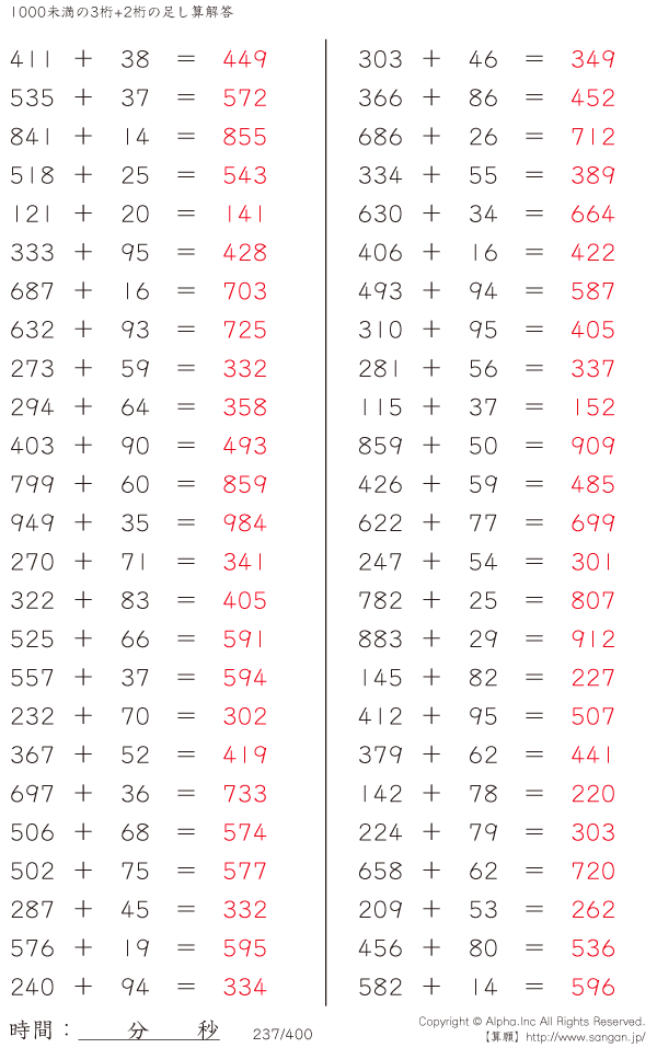 1000未満の3桁+2桁の足し算 [解答]237/400