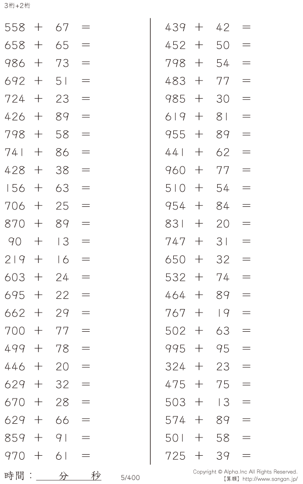 3桁+2桁の足し算 [問題]005/400