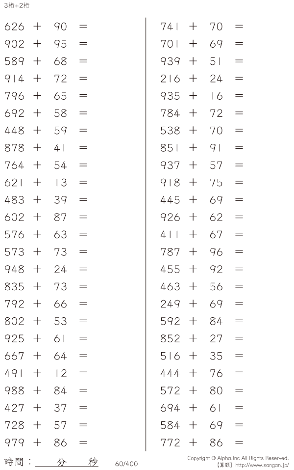 3桁+2桁の足し算 [問題]060/400