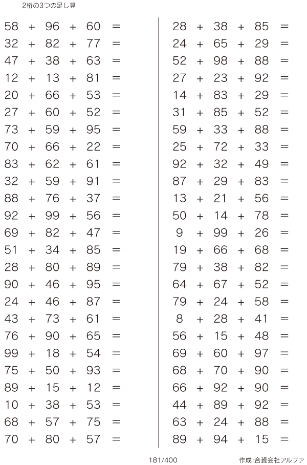 2桁の3つの足し算 [問題]181/400