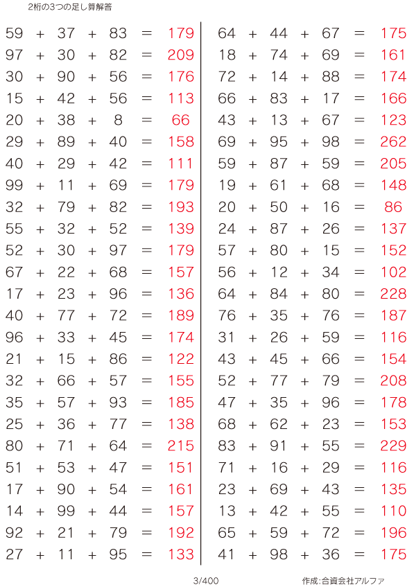 2桁の3つの足し算 [解答]003/400