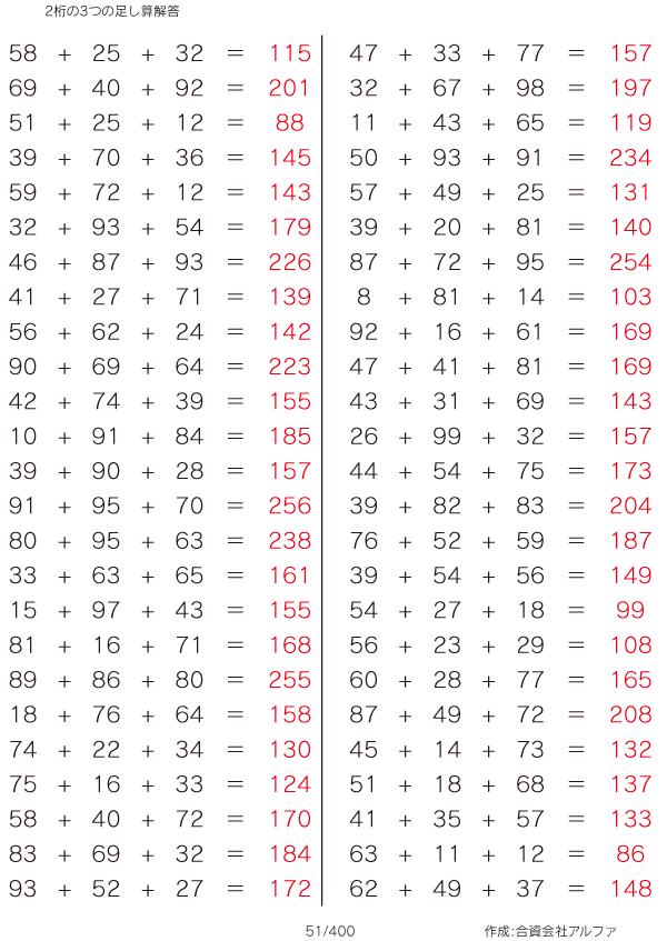 2桁の3つの足し算 [解答]051/400