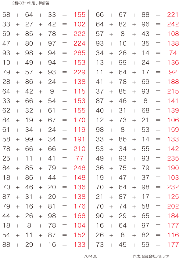 2桁の3つの足し算 [解答]070/400
