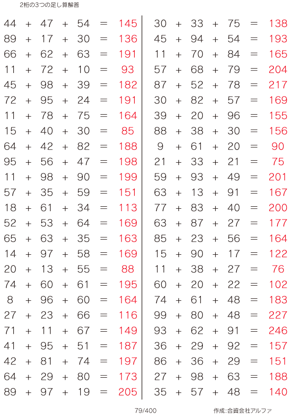 2桁の3つの足し算 [解答]079/400