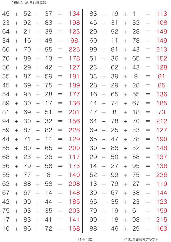 2桁の3つの足し算 [解答]114/400