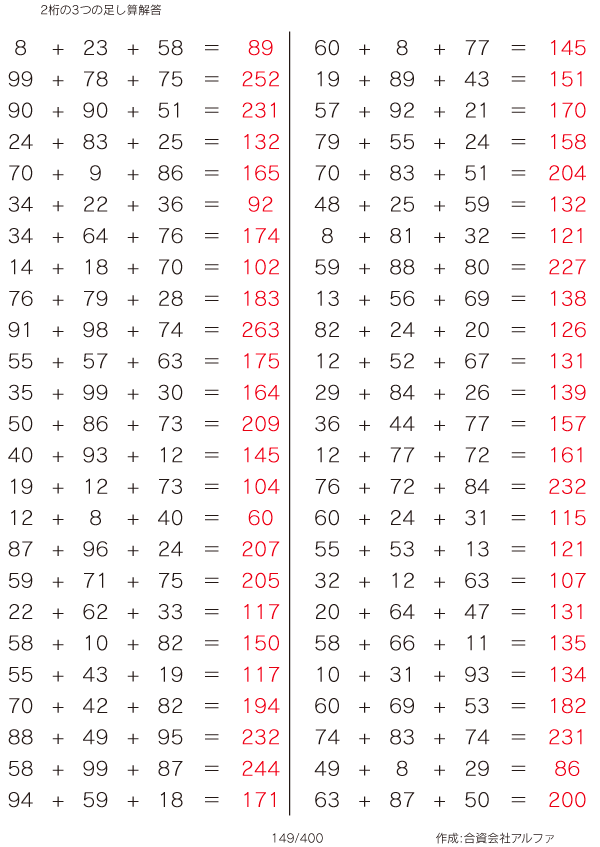 2桁の3つの足し算 [解答]149/400