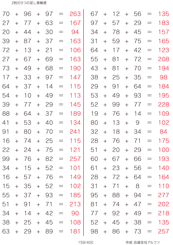 2桁の3つの足し算 [解答]159/400