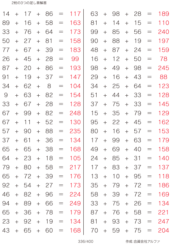 2桁の3つの足し算 [解答]336/400