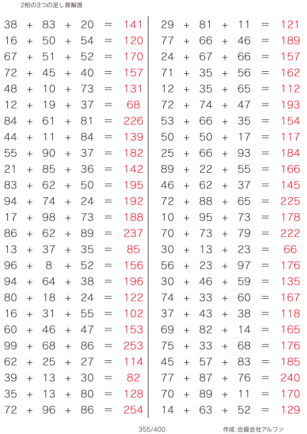 2桁の3つの足し算 [解答]355/400