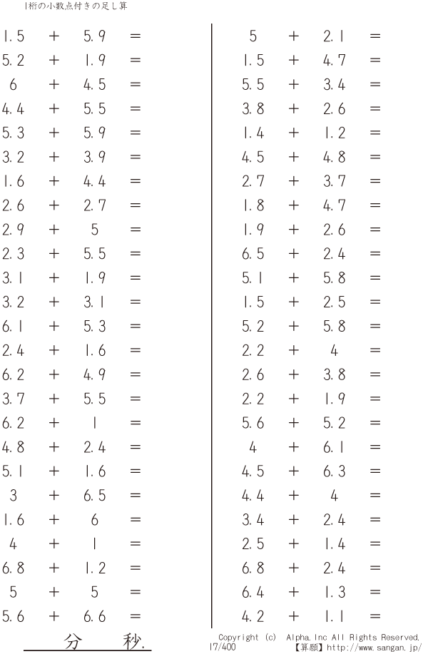 1桁の小数点付きの足し算 [問題]017/400