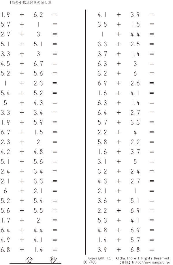 1桁の小数点付きの足し算 [問題]301/400