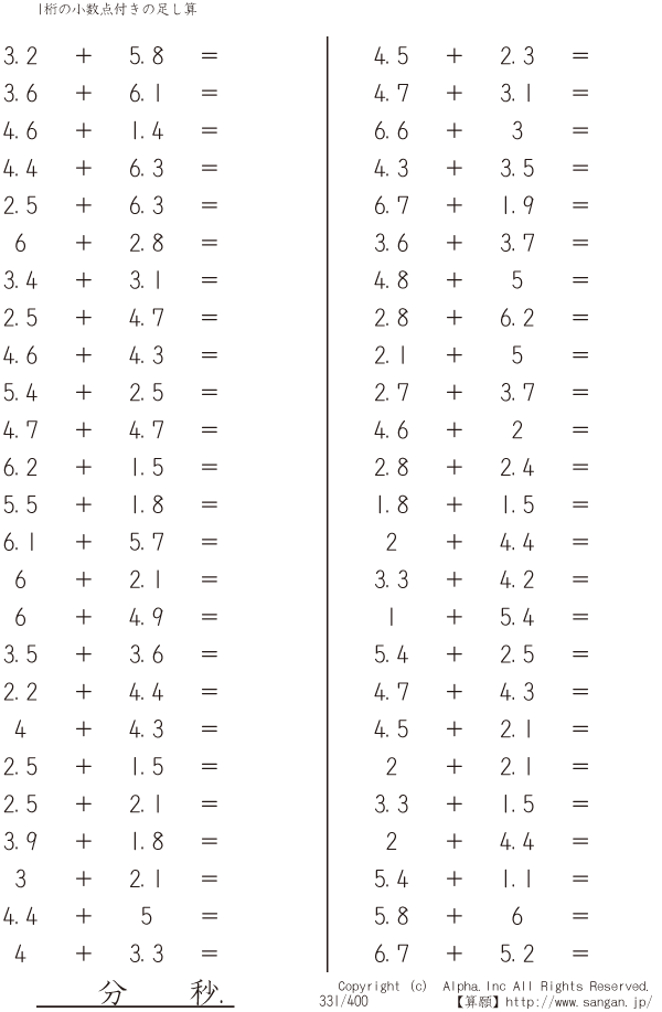 1桁の小数点付きの足し算 [問題]331/400