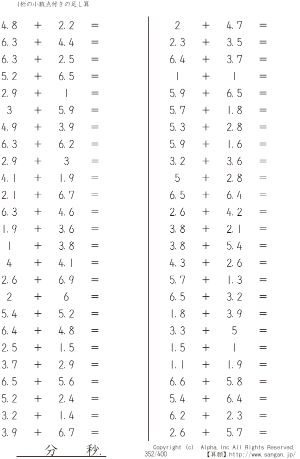 1桁の小数点付きの足し算 [問題]352/400