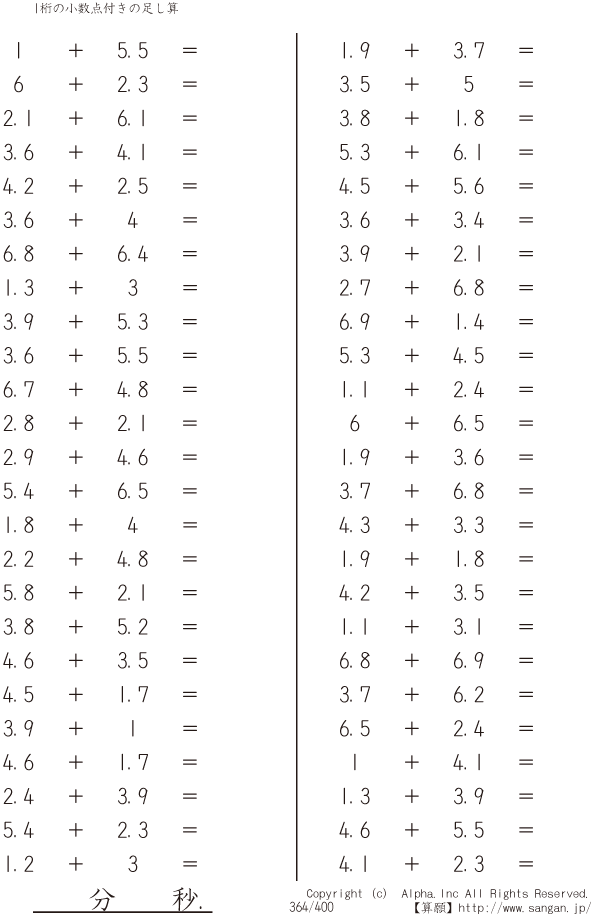 1桁の小数点付きの足し算 [問題]364/400