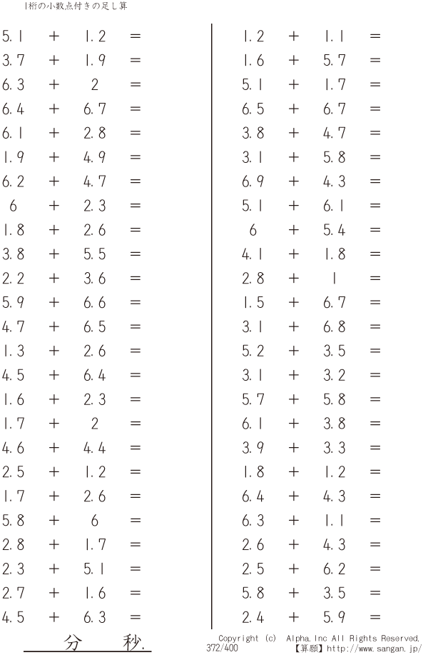 1桁の小数点付きの足し算 [問題]372/400