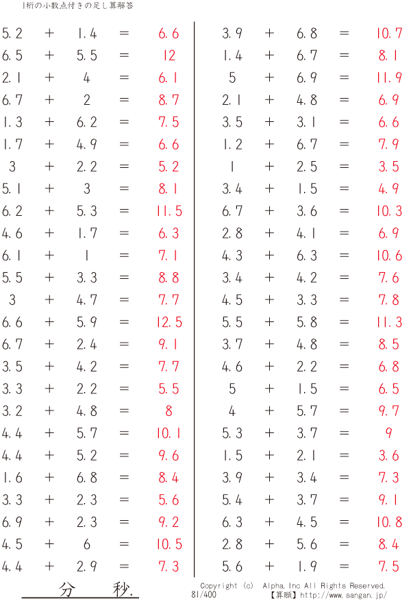 1桁の小数点付きの足し算 [解答]081/400