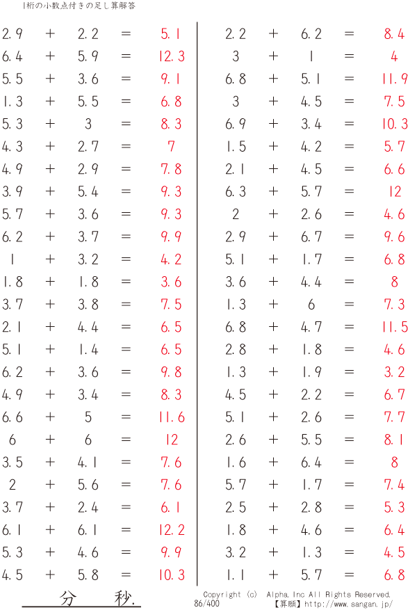 1桁の小数点付きの足し算 [解答]086/400