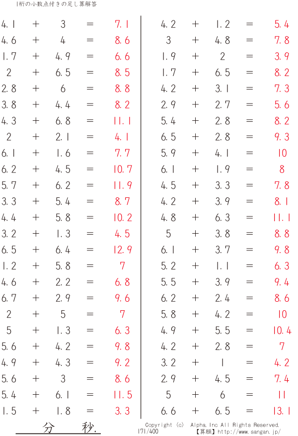 1桁の小数点付きの足し算 [解答]171/400