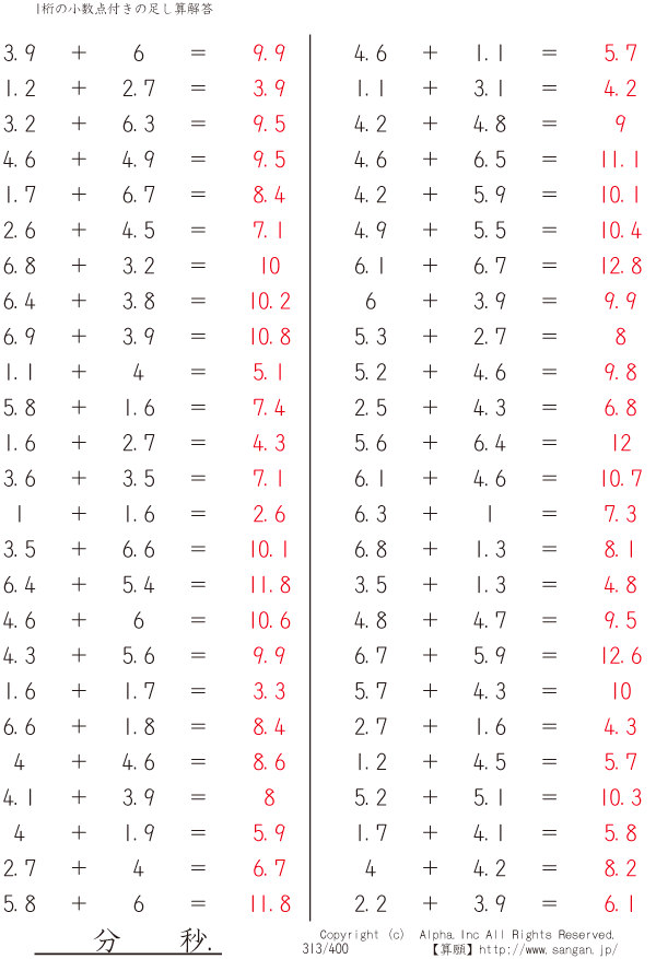1桁の小数点付きの足し算 [解答]313/400