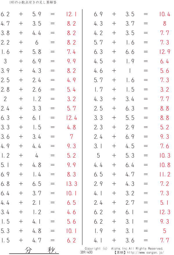1桁の小数点付きの足し算 [解答]389/400