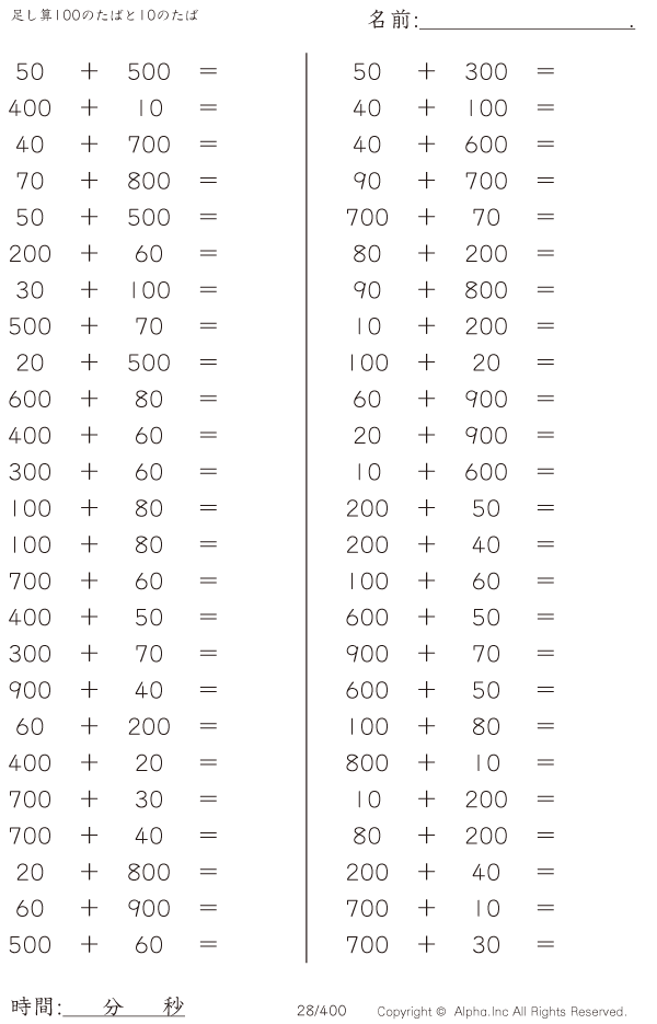 足し算100のたばと10のたば [問題]028/400