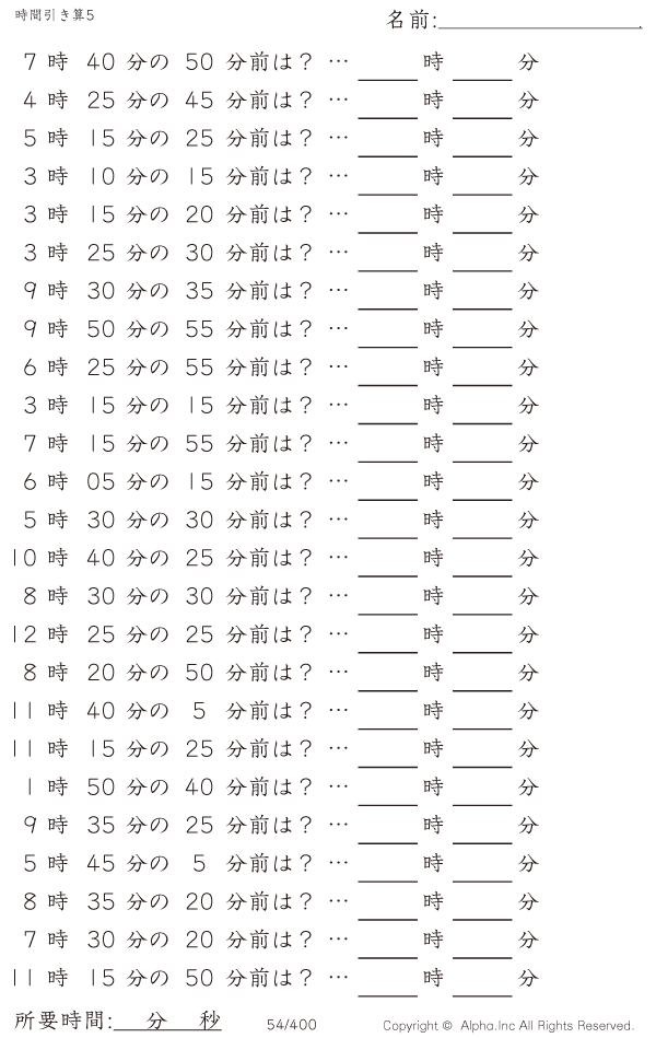 時間引き算5:5分単位 [問題]054/400