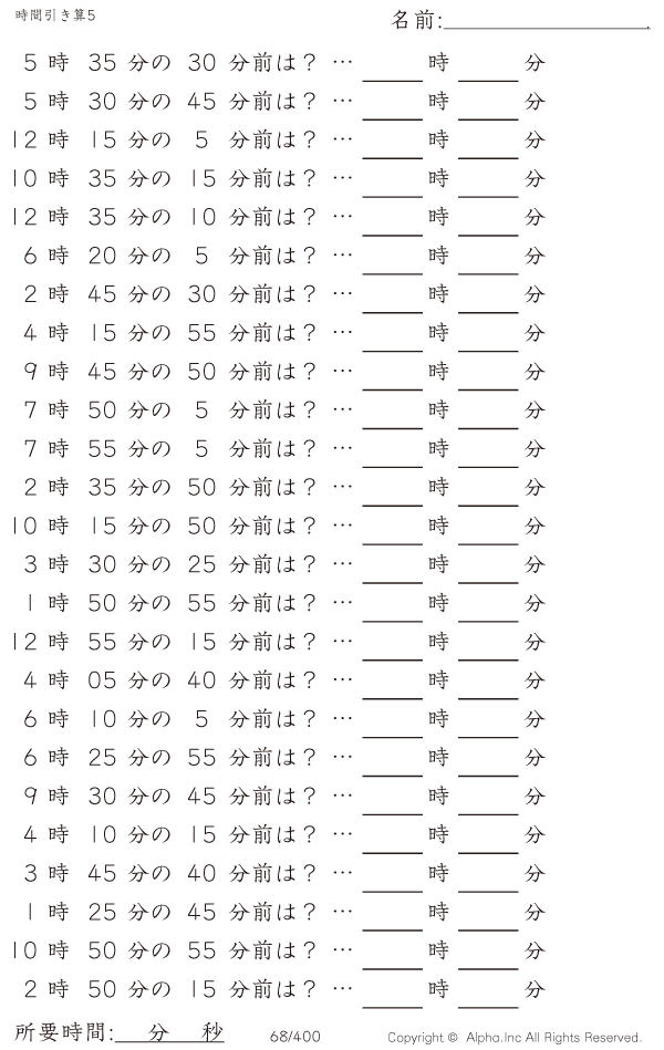 時間引き算5:5分単位 [問題]068/400