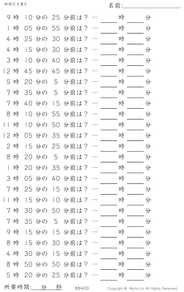 時間引き算5:5分単位 [問題]088/400
