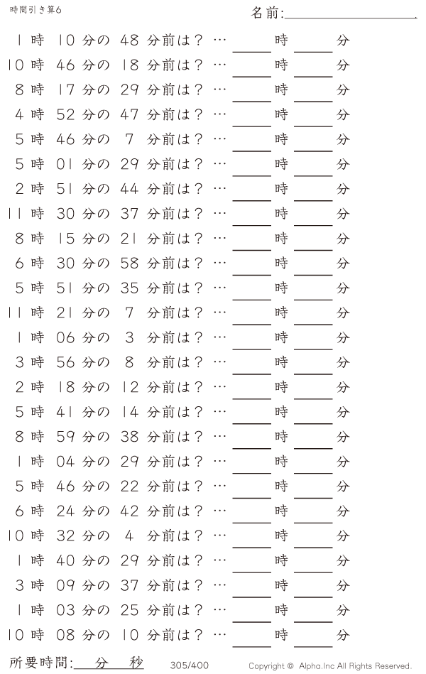 時間引き算6:1分単位 [問題]305/400