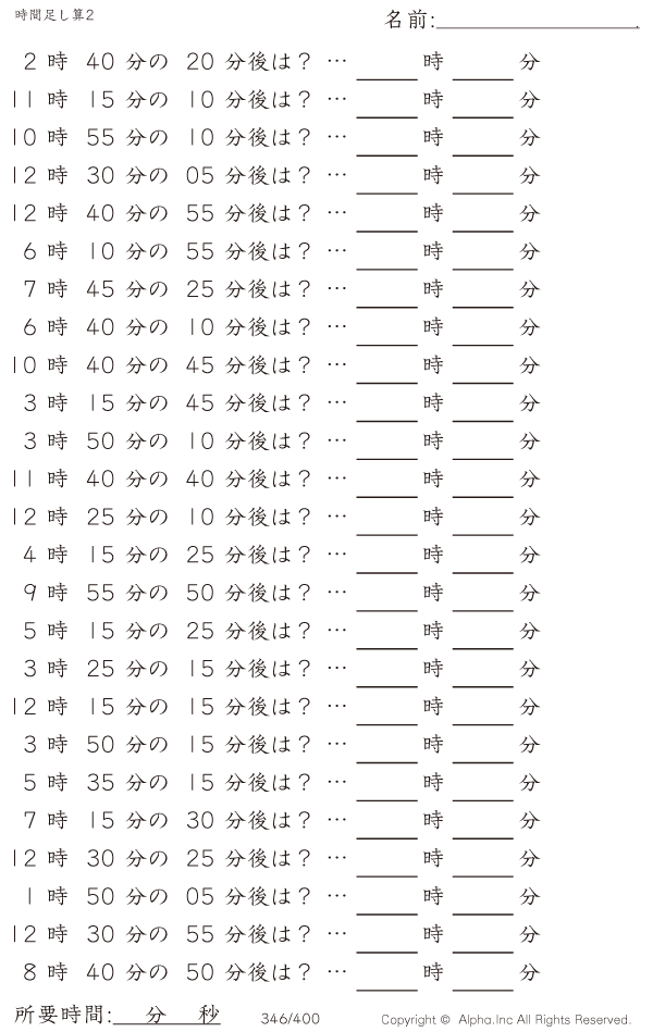 時間足し算2:5分単位 [問題]346/400