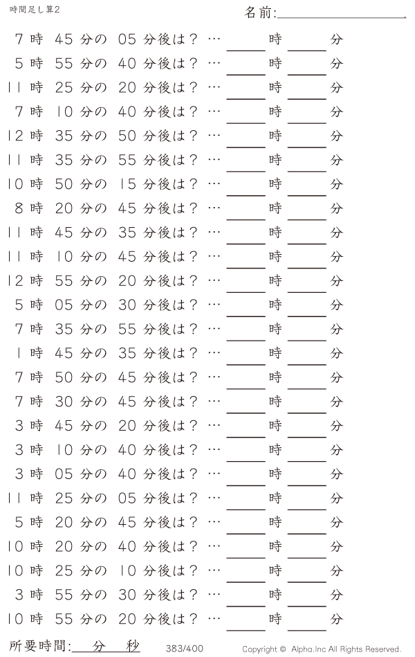 時間足し算2:5分単位 [問題]383/400