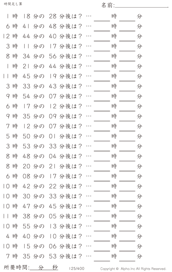 時間足し算3:1分単位 [問題]125/400