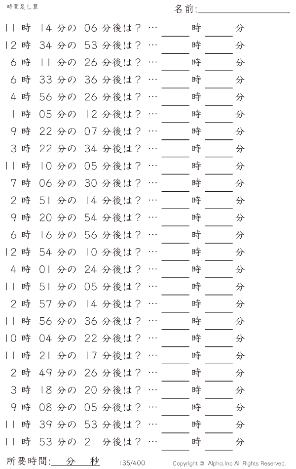 時間足し算3:1分単位 [問題]135/400