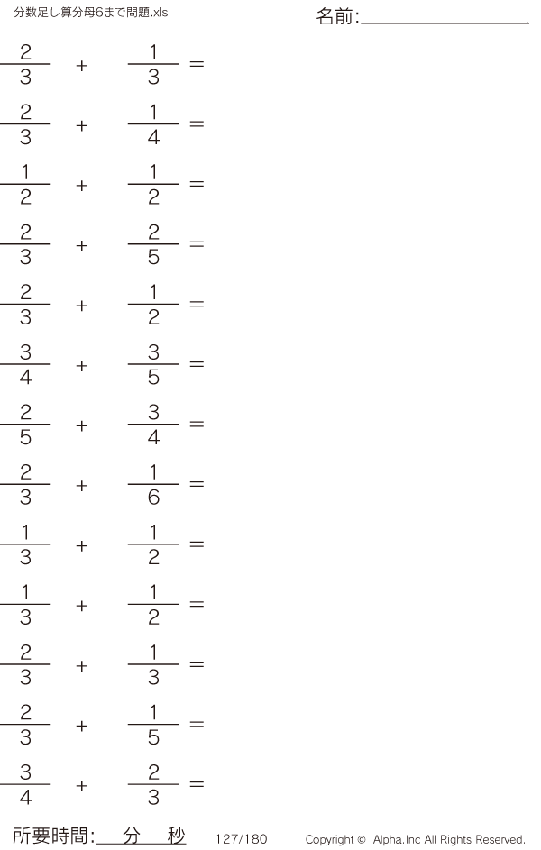 分数の足し算(分母6まで) [問題]127/180