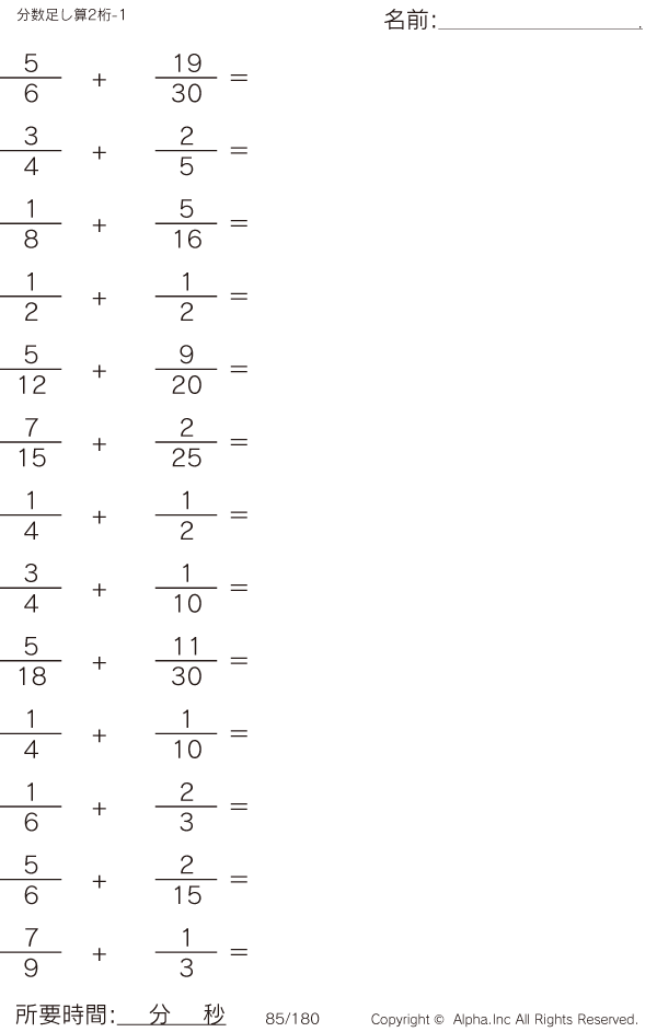 分数の足し算(分母2桁-1) [問題]085/180