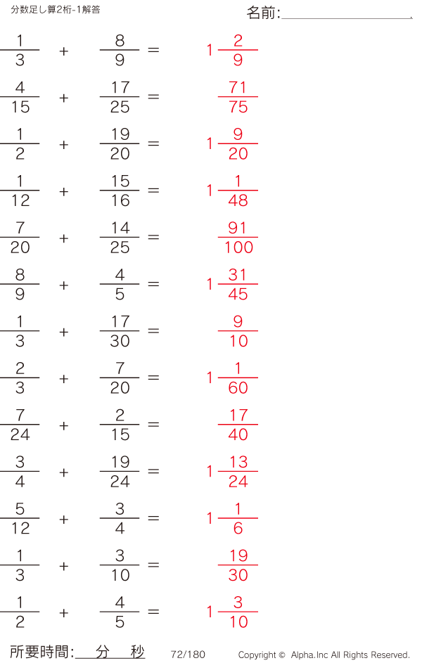 分数の足し算(分母2桁-1) [解答]072/180